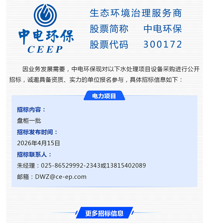 【招標-26-11期】中電環(huán)保誠邀參與:水處理項目設備采購公開招標
